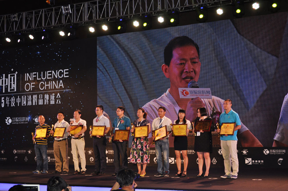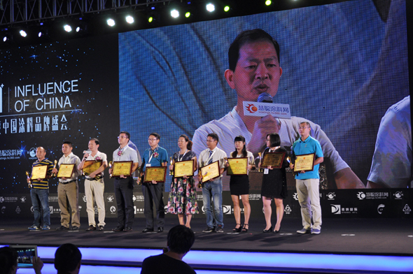 徐總在第九屆中國十佳涂料品牌評選頒獎臺上